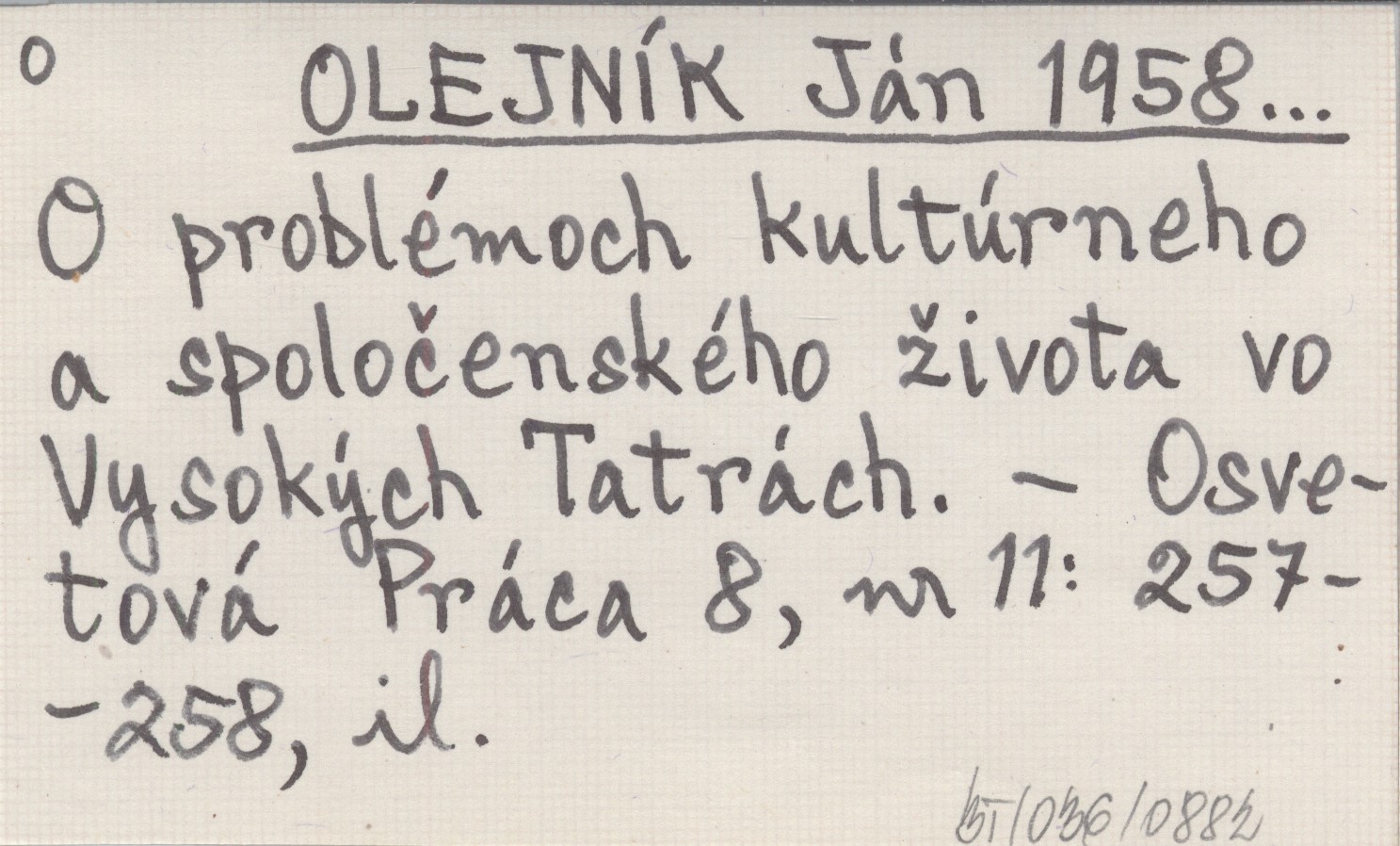 OLEJNÍK Ján 1958... O problémoch kultúrneho a spoločenského ľivota vo Vysokých Tatrách.