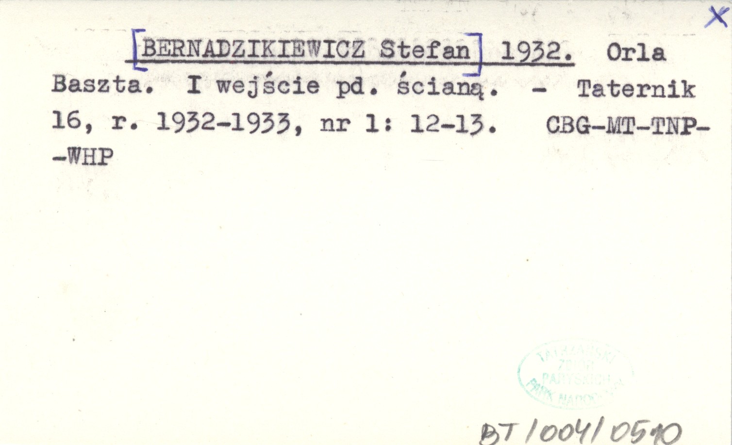 [BERNADZIKIEWICZ Stefan] 1932 Orla Baszta. I wejście pd. ścianą.