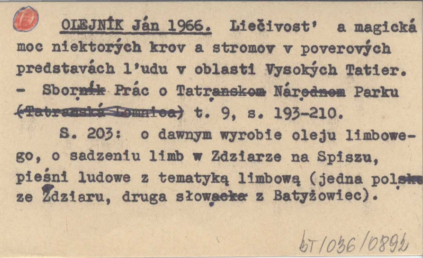 OLEJNÍK Ján 1966 Lieèivos» a magická moc niektoręch krov a stromov v poverovęch predstavách ”udu v oblasti Vysokęch Tatier.