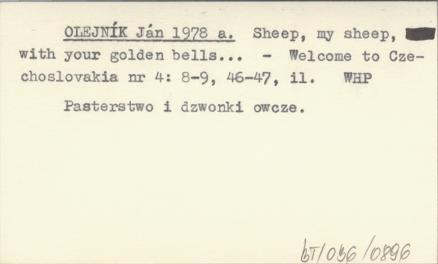 Welcome to Czechoslovakia, Nr 4: 8-9, 46-47, il. Pasterstwo i dzwonki owcze.