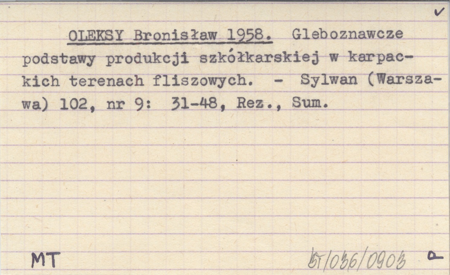 OLEKSY Bronisław 1958 Gleboznawcze podstawy produkcji szkółkarskiej w karpackich terenach fliszowych.