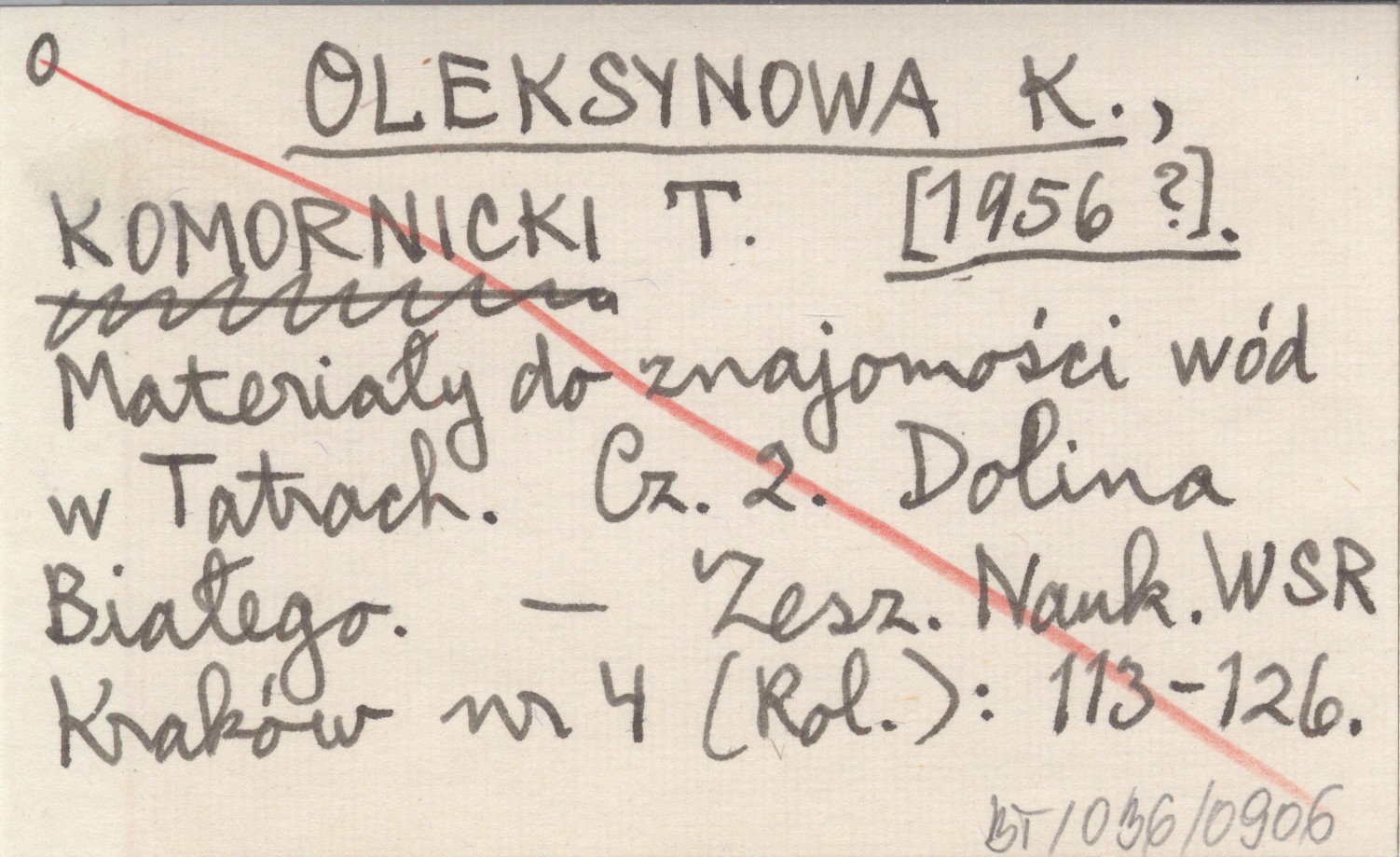 OLEKSYNOWA K. KOMORNICKI, T. ; [1956?] Materiały do znajomości wód w Tatrach. Cz. 2. Dolina Białego.