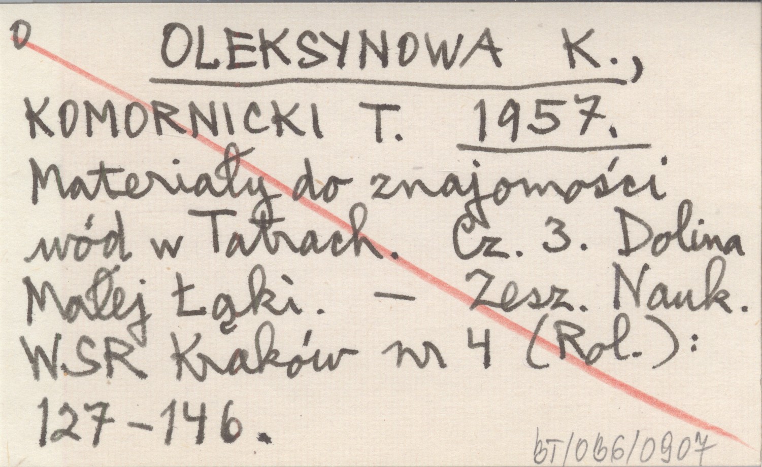 OLEKSYNOWA K. KOMORNICKI, T. ; 1957 Materiały do znajomości wód w Tatrach. Cz. 3. Dolina Małej Łąki.