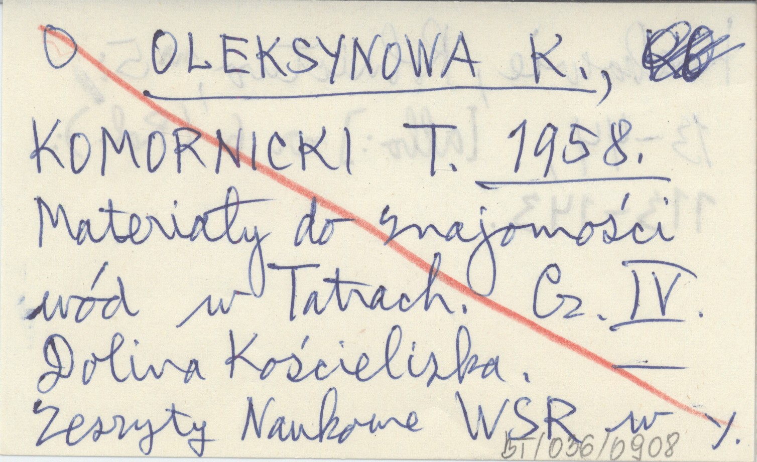 OLEKSYNOWA K. KOMORNICKI, T. ; 1958 Materiały do znajomości wód w Tatrach. Cz. IV. Dolina Kościeliska.