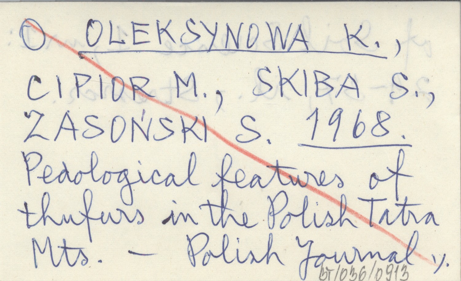 OLEKSYNOWA K. CIPIOR, M. ; SKIBA, S. ; ZASOŃSKI, S. ; 1968 Pedological features of thufurs in the Polish Tatra Mts.