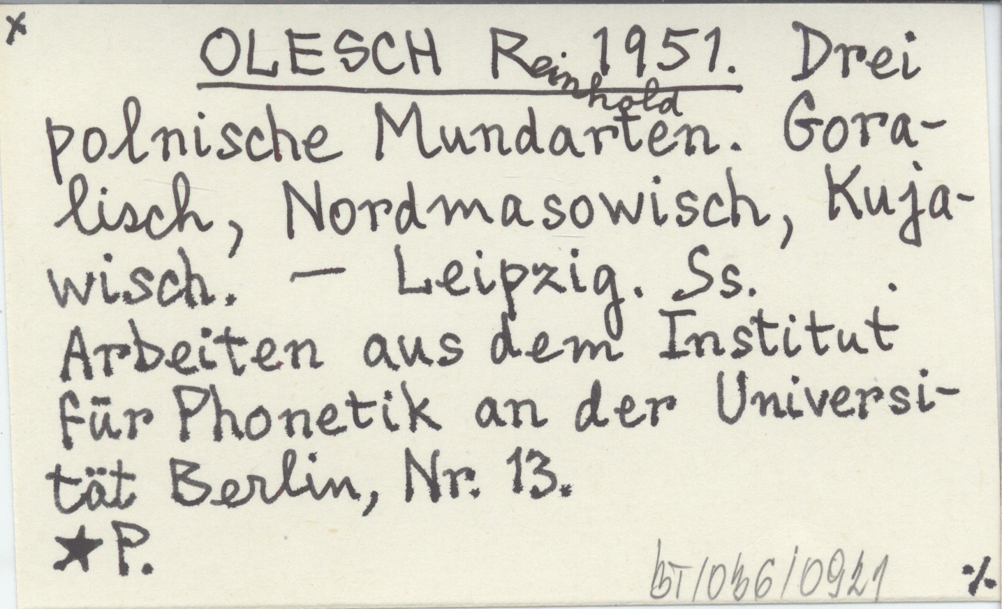 OLESCH Reinhold 1951 Drei polnische Mundarten. Goralisch, Nordmasowisch, Kujawisch.