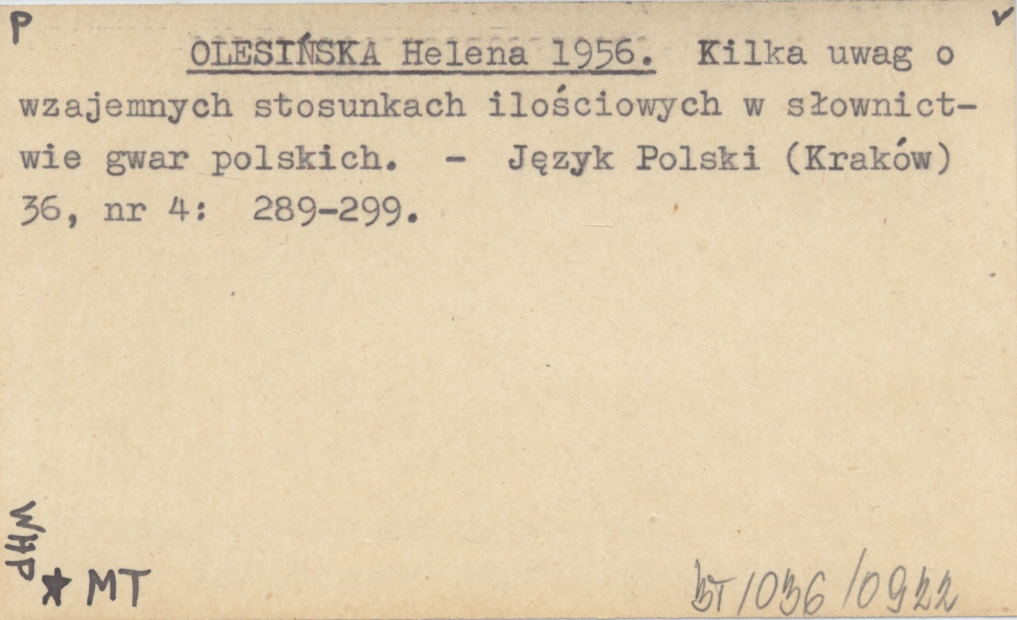 OLESIŃSKA Helena 1956 Kilka uwag o wzajemnych stosunkach ilościowych w słownictwie gwar polskich.
