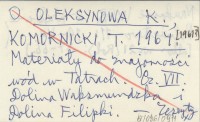 OLEKSYNOWA K. KOMORNICKI, T. ; 1964 [1961?] Materiały do znajomości wód w Tatrach. Cz. VII. Dolina Waksmundzka i Dolina Filipki.