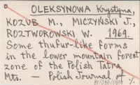 OLEKSYNOWA Krystyna KOZUB, M. ; MICZYŃSKI, J. ; ROZTWOROWSKI, W. ; 1969 Some thufur-like forms in the lower mountain forest zone of the Polish Tatra Mts.
