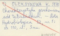 OLEKSYNOWA K. 1970 Charakterystyka geochemiczna wód tatrzańskich.