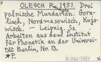OLESCH Reinhold 1951 Drei polnische Mundarten. Goralisch, Nordmasowisch, Kujawisch.