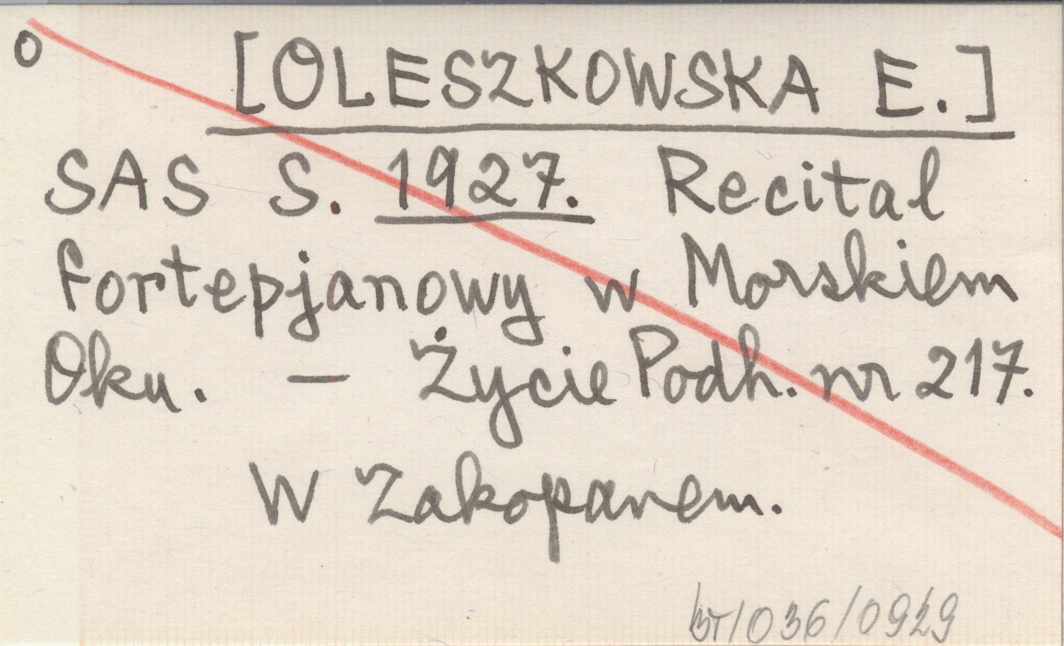 SAS S. [OLESZKOWSKA E.] 1927 Recital fortepjanowy w Morskiem Oku.