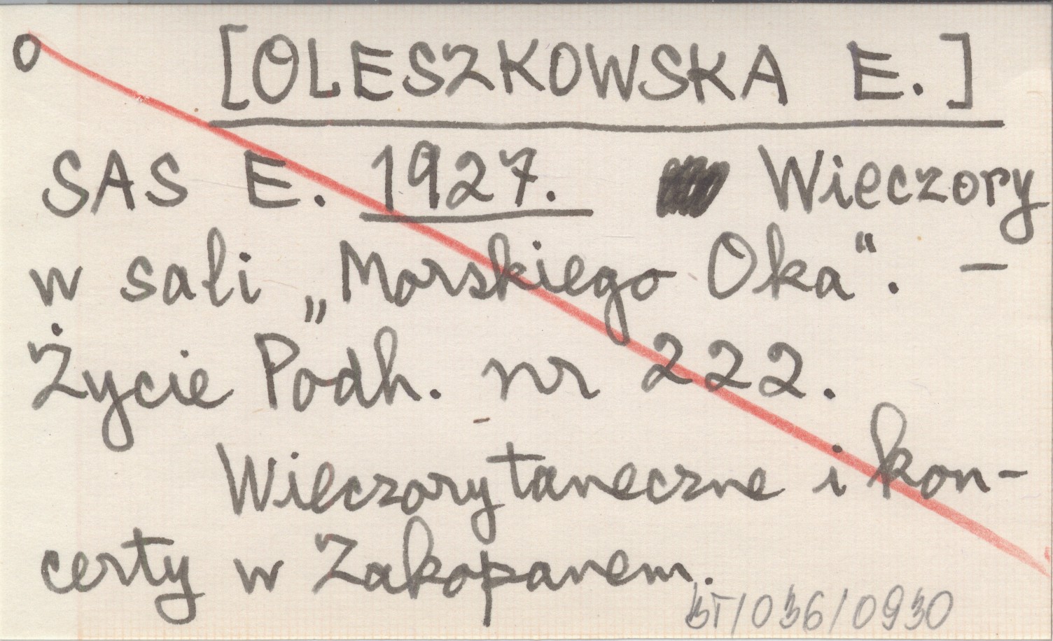 SAS E. [OLESZKOWSKA E.] 1927 Wieczory w sali "Morskiego Oka".