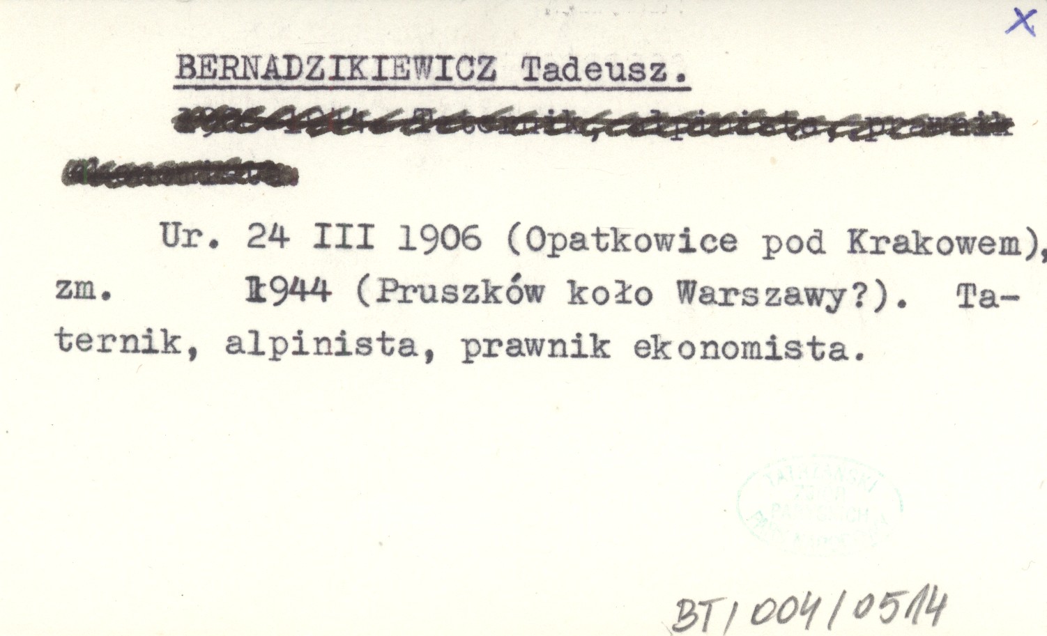 Ur. 24 III 1906 (Opatkowice pod Krakowem), zm. 1944 (Pruszków koło Warszawy?). Taternik, alpinista, prawnik ekonomista.