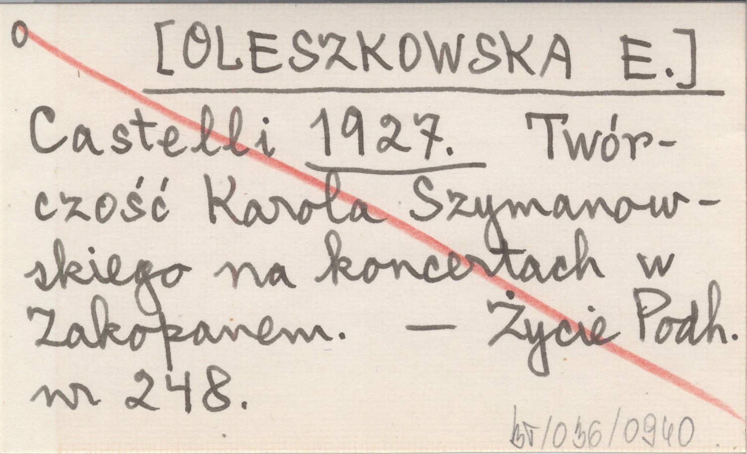 Castelli [OLESZKOWSKA E.] 1927 Twórczość Karola Szymanowskiego na koncertach w Zakopanem.