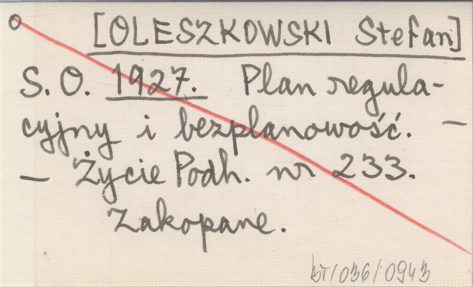S. O. [OLESZKOWSKI Stefan] 1927 Plan regulacyjny i bezplanowość.