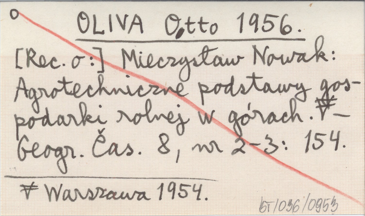 OLIVA Otto 1956 Mieczysław Nowak: Agrotechniczne podstawy gospodarki rolnej w górach. Warszawa 1954.