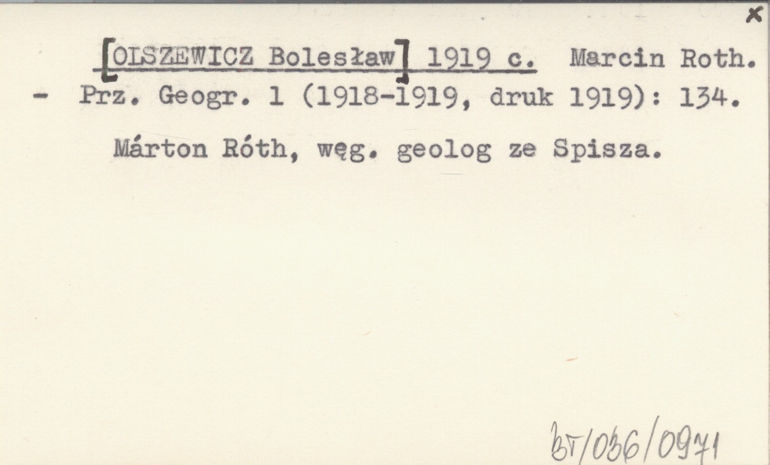 Przegląd Geograficzny, 1 (1918-1919, druk 1919): 134. Márton Róth, węgierski geolog ze Spisza.
