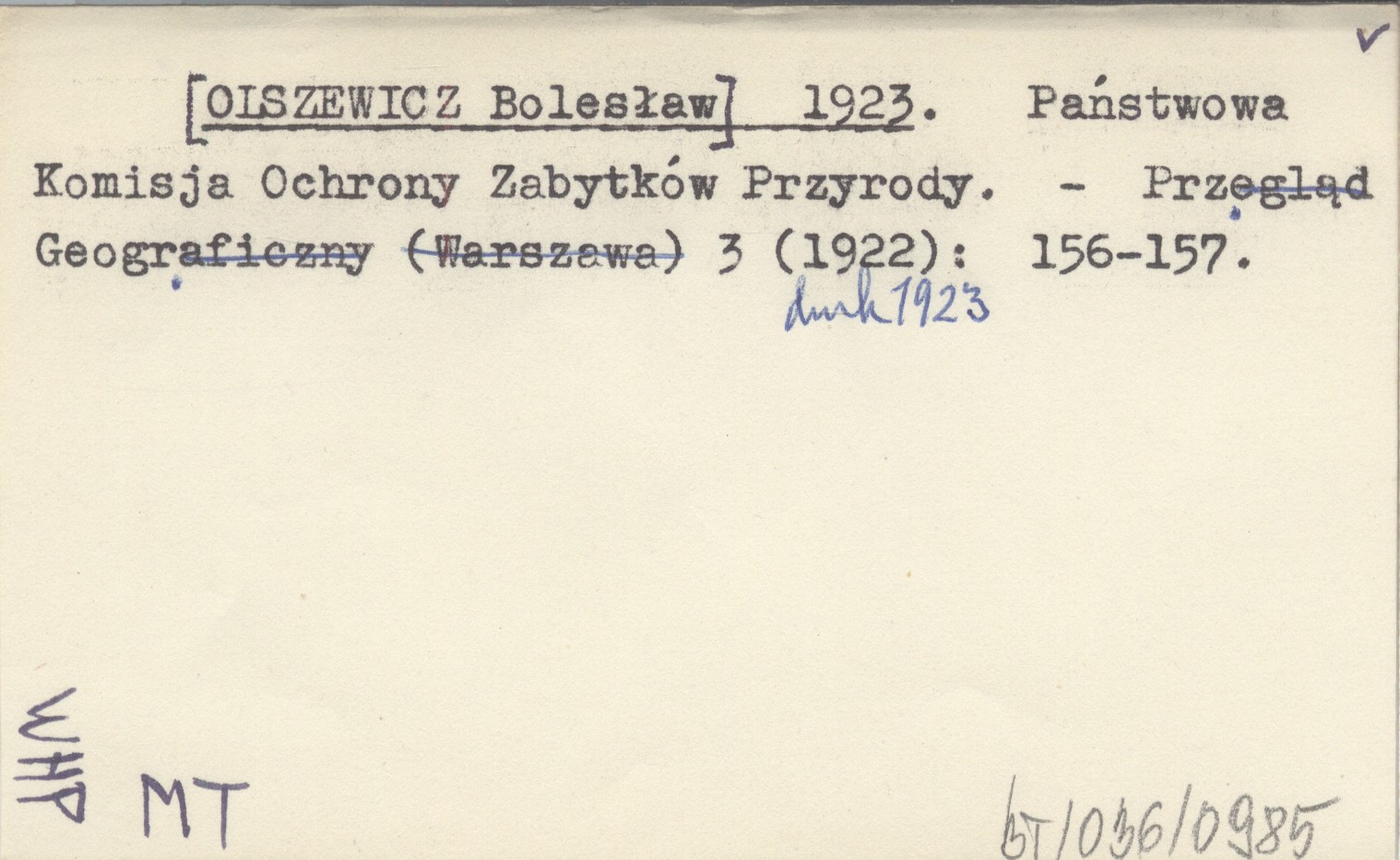 Przegląd Geograficzny, 3 (1922, druk 1923): 156-157.