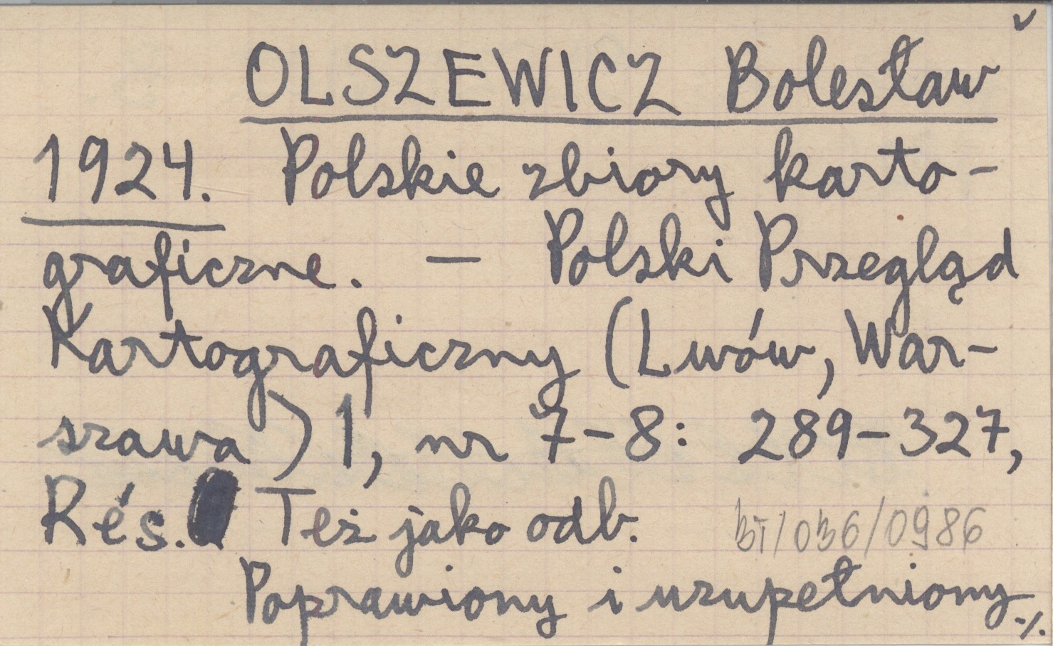 OLSZEWICZ Bolesław 1924 Polskie zbiory kartograficzne.