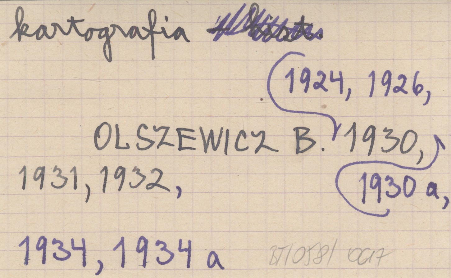 Polski Przegląd Kartograficzny (Lwów ; Warszawa) , 1, nr 7-8: 289-327, Rés. Też jako odbitka. Poprawiony i uzupełniony przedruk: OLSZEWICZ B. 1926. OLSZEWICZ B. 1926