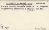 [OLSZEWICZ Bolesław] 1923 Państwowa Komisja Ochrony Zabytków Przyrody.