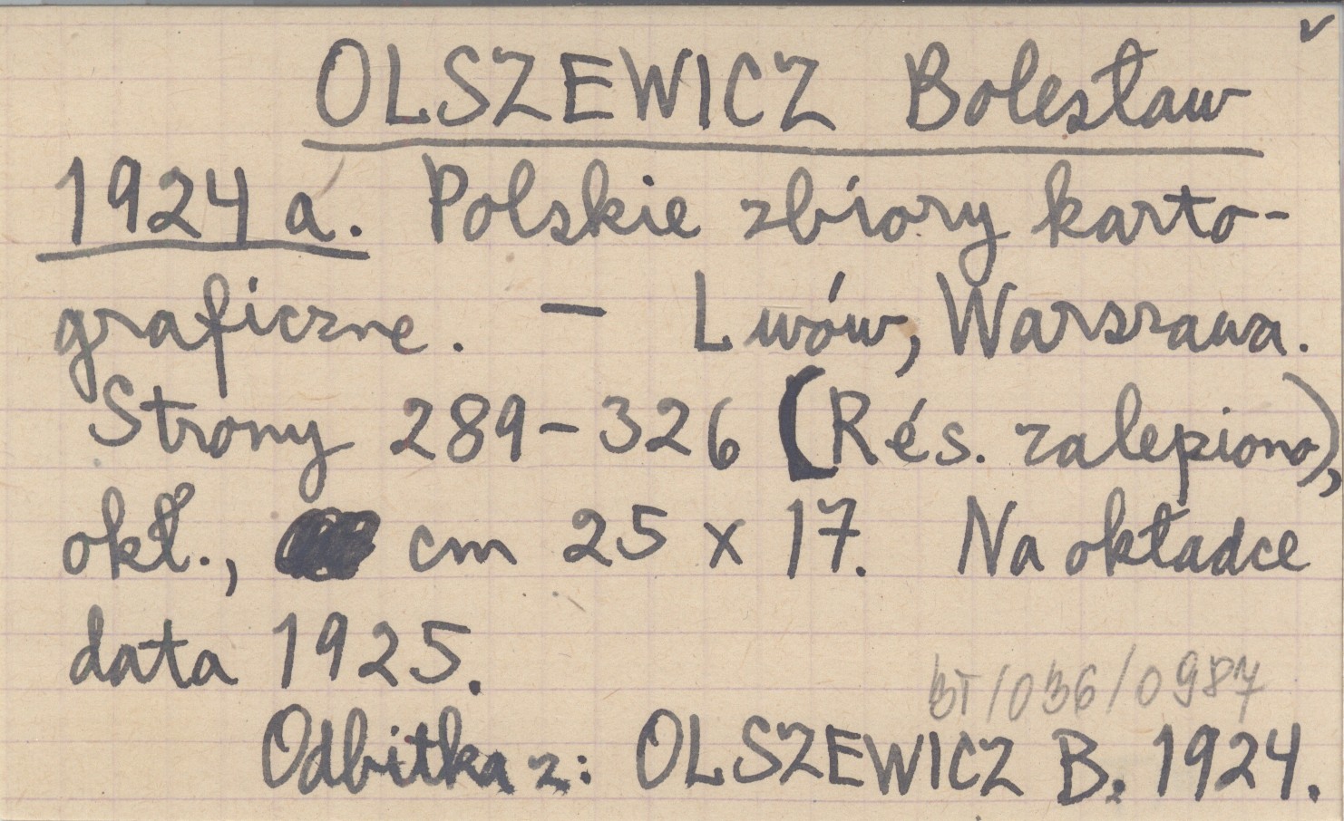 OLSZEWICZ Bolesław 1924 a Polskie zbiory kartograficzne.