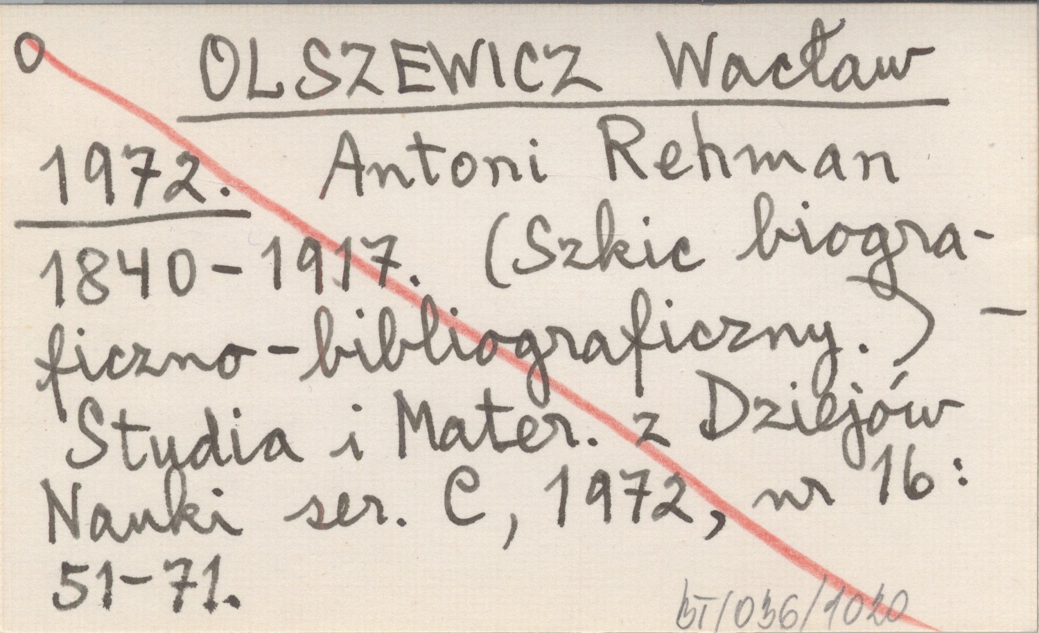 OLSZEWICZ Wacław 1972 Antoni Rehman 1840-1817. (Szkic biograficzno-bibliograficzny).