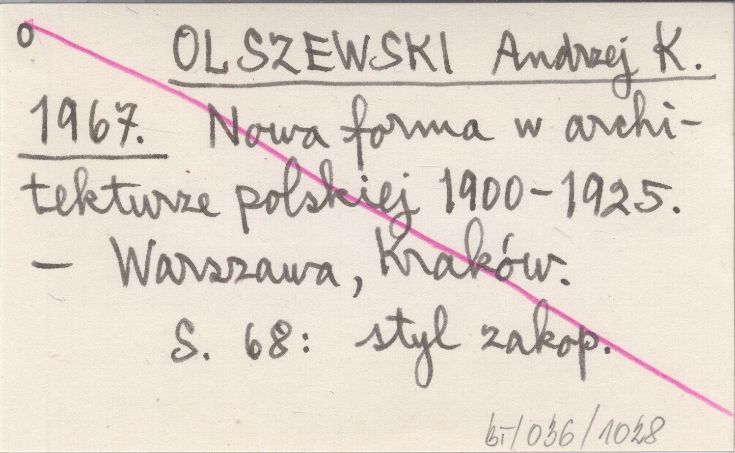 OLSZEWSKI Andrzej K. 1967 Nowa forma w architekturze polskiej 1900-1925.