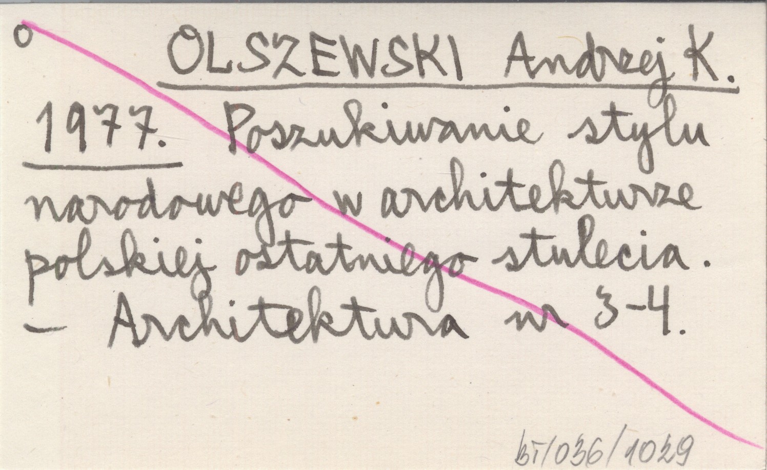 OLSZEWSKI Andrzej K. 1977 Poszukiwanie stylu narodowego w architekturze polskiej ostatniego stulecia.