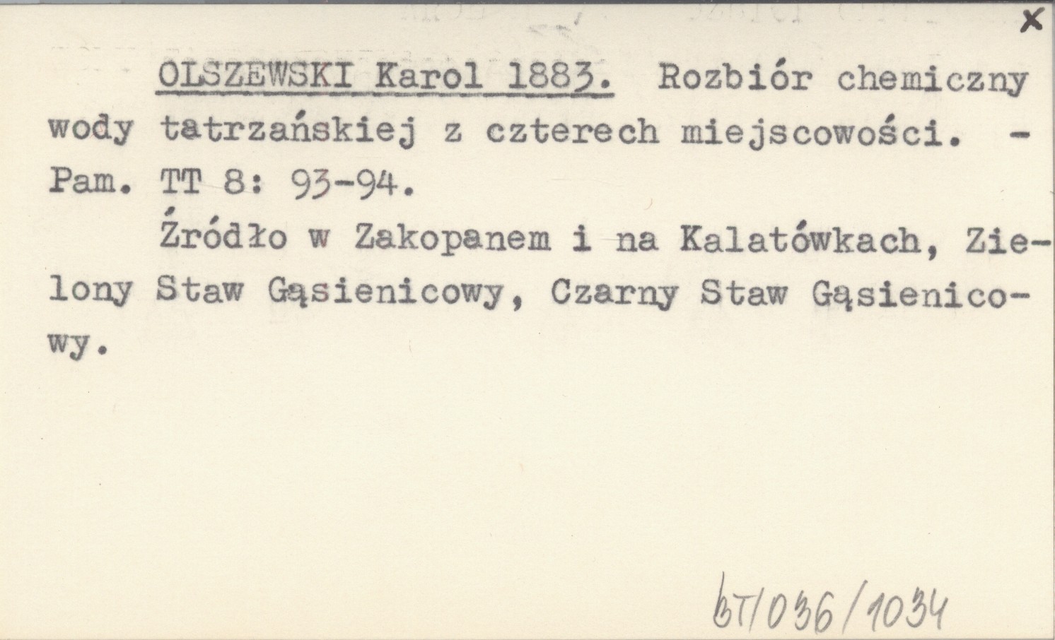 OLSZEWSKI Karol 1883 Rozbiór chemiczny wody tatrzańskiej z czterech miejscowo¶ci.