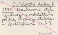 OLSZEWSKI Andrzej K. 1977 Poszukiwanie stylu narodowego w architekturze polskiej ostatniego stulecia.