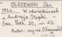 OLSZEWSKI Jan 1932... W odwiedzinach u Andrzeja Stopki.