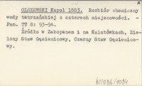 OLSZEWSKI Karol 1883 Rozbiór chemiczny wody tatrzańskiej z czterech miejscowości.