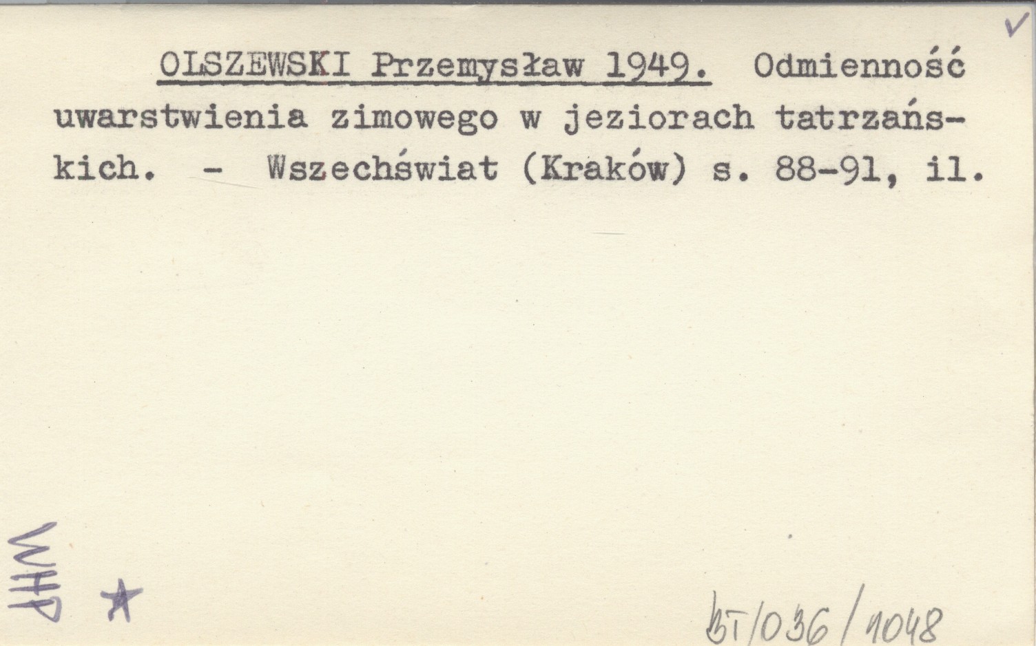 OLSZEWSKI Przemysław 1949 Odmienność uwarstwienia zimowego w jeziorach tatrzańskich.