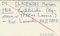 OLSZEWSKI Marian 1907 Ćwikliński. (Wystawa w TPSP we Lwowie).