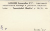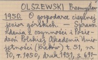 OLSZEWSKI Przemysław 1946 a Zimowe stosunki tlenowe większych jezior tatrzańskich.