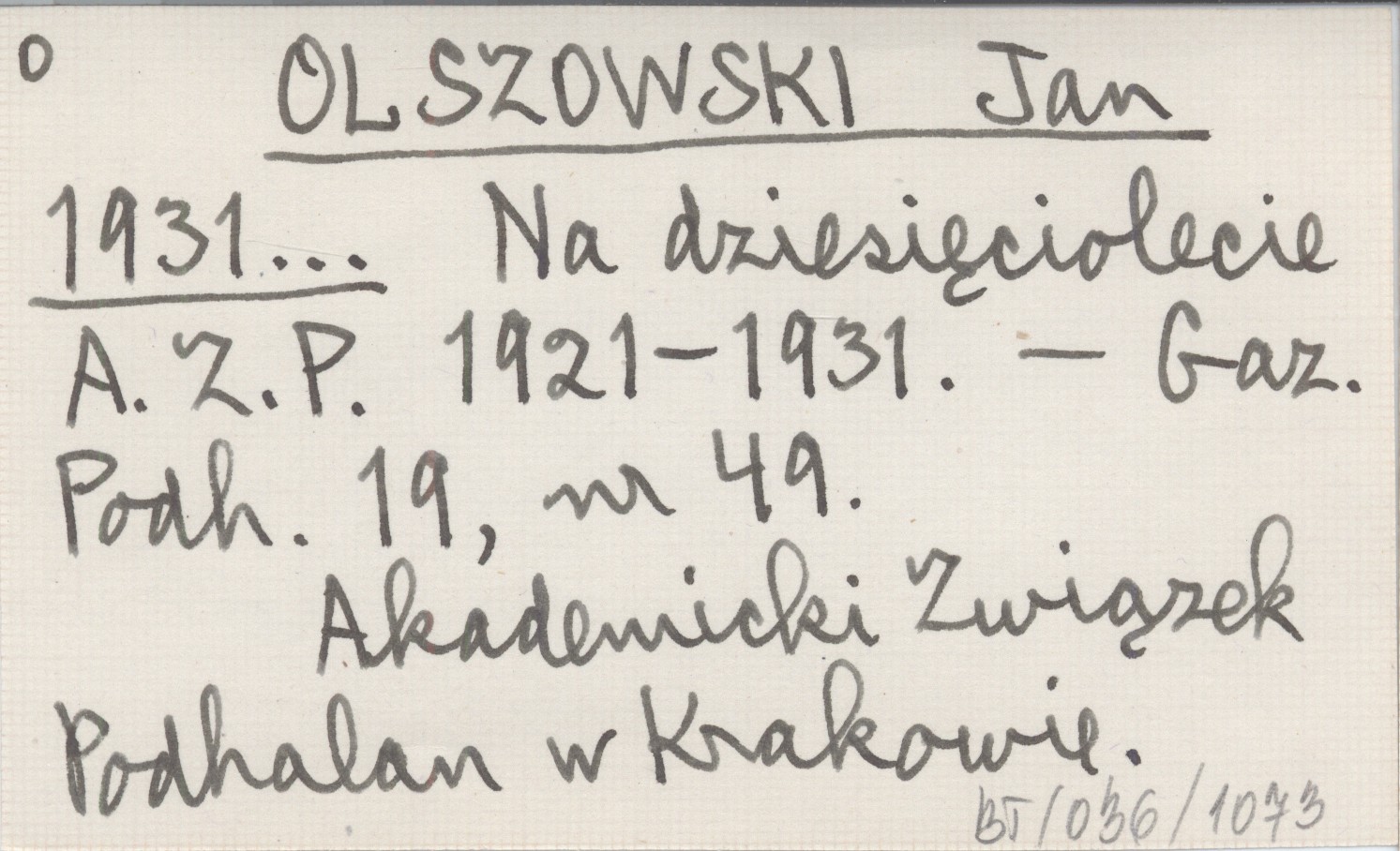 OLSZOWSKI Jan 1931... Na dziesięciolecie A.Z.P. 1921-1931.