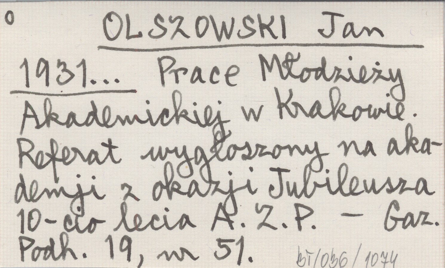 OLSZOWSKI Jan 1931... Prace Młodzieży Akademickiej w Krakowie. Referat wygłoszony na akademji z okazji Jubileusza 10-cio lecia A. Z. P.