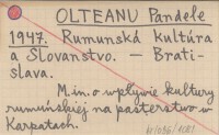 OLTEANU Pandele 1947 Rumunská kultúra a Slovanstvo.