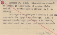 OLTEANU P. 1948 Linguistica slovacă de astăzi si importanta ei pentru limba romînă.