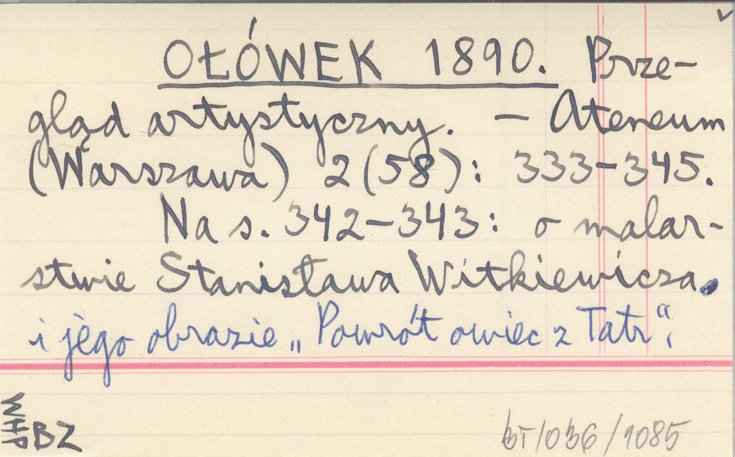 Ateneum (Warszawa) , 2 (58): 333-345. Na s. 342-343: o malarstwie Stanisława Witkiewicza i jego obrazie "Powrót owiec z Tatr".