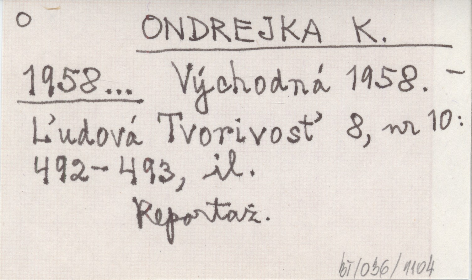 Ľudová Tvorivosť, 8, nr 10: 492-493, il. Reportaż.