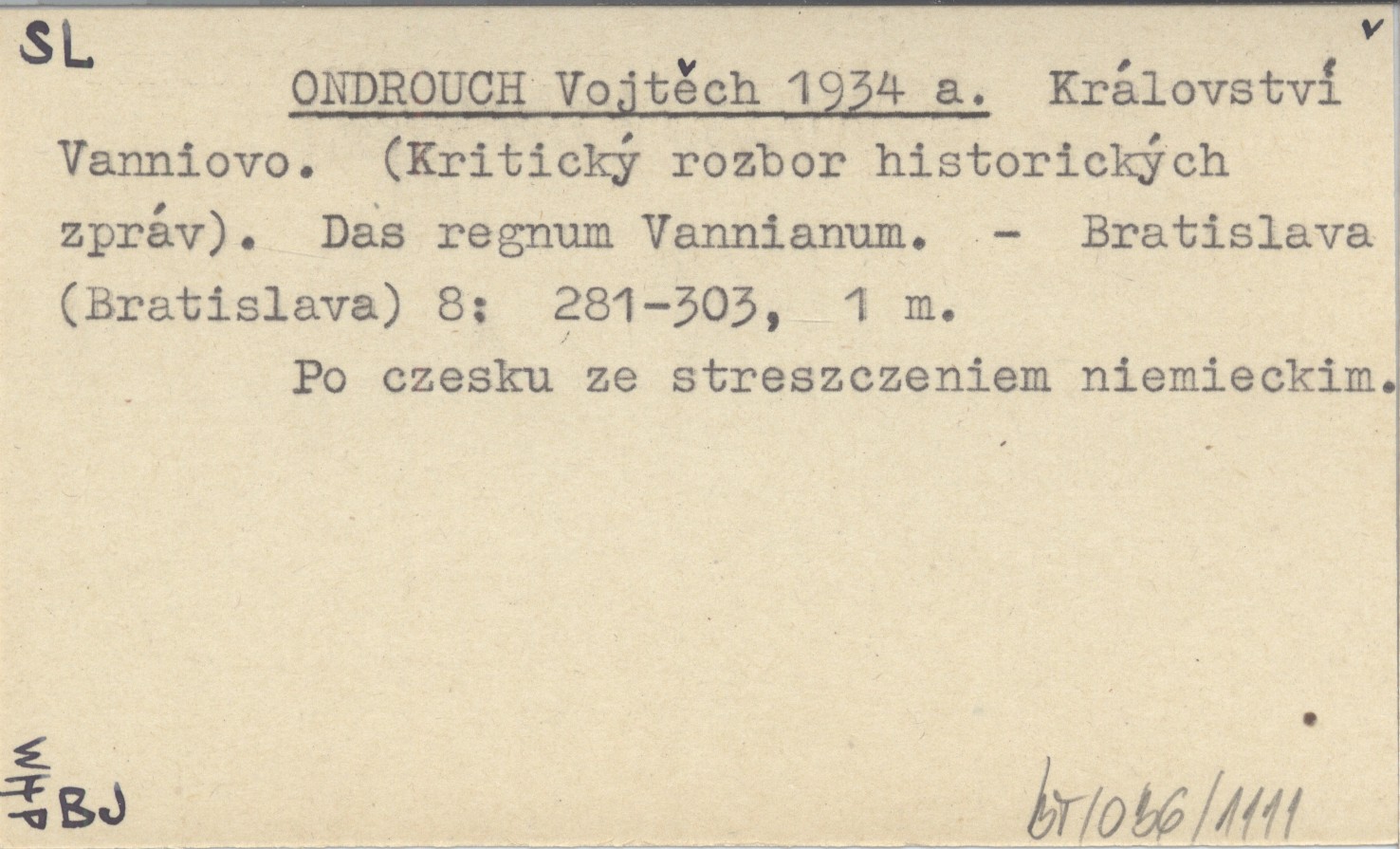 Bratislava (Bratislava) , 8: 281-303, 1 m. Po czesku ze streszczeniem niemieckim.