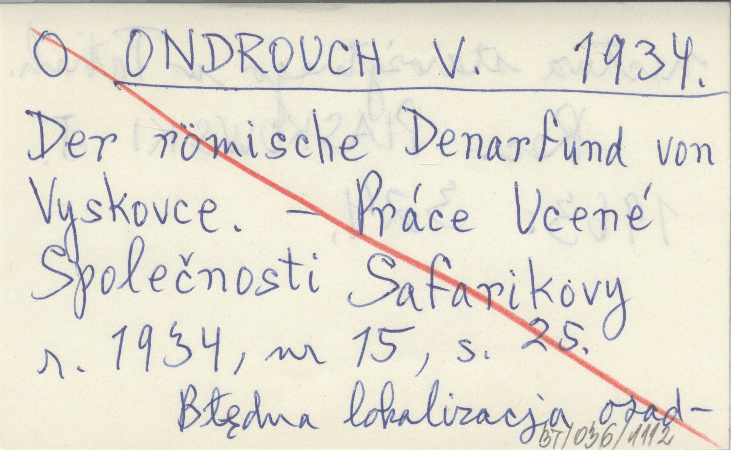 ONDROUCH V. 1934 Der römische Denarfund von Vyskovce.