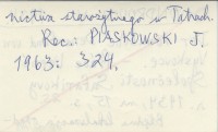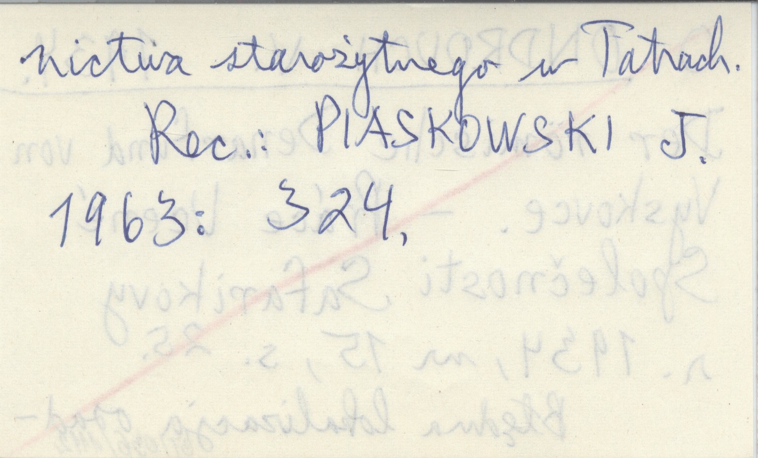 Práce Ucené Společnosti Safarikovy, R. 1934, nr 15: 25. Błędna lokalizacja osadnictwa starożytnego w Tatrach. REC: PIASKOWSKI J. 1963: 324.