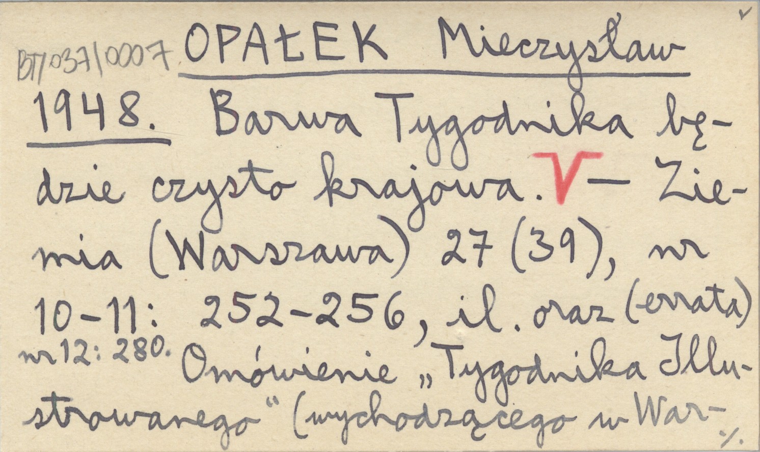 OPAŁEK Mieczysław 1948 Barwa Tygodnika będzie czysto krajowa. Z przygotowanej do druku książki pt. "Szlakami krajoznawstwa polskiego".