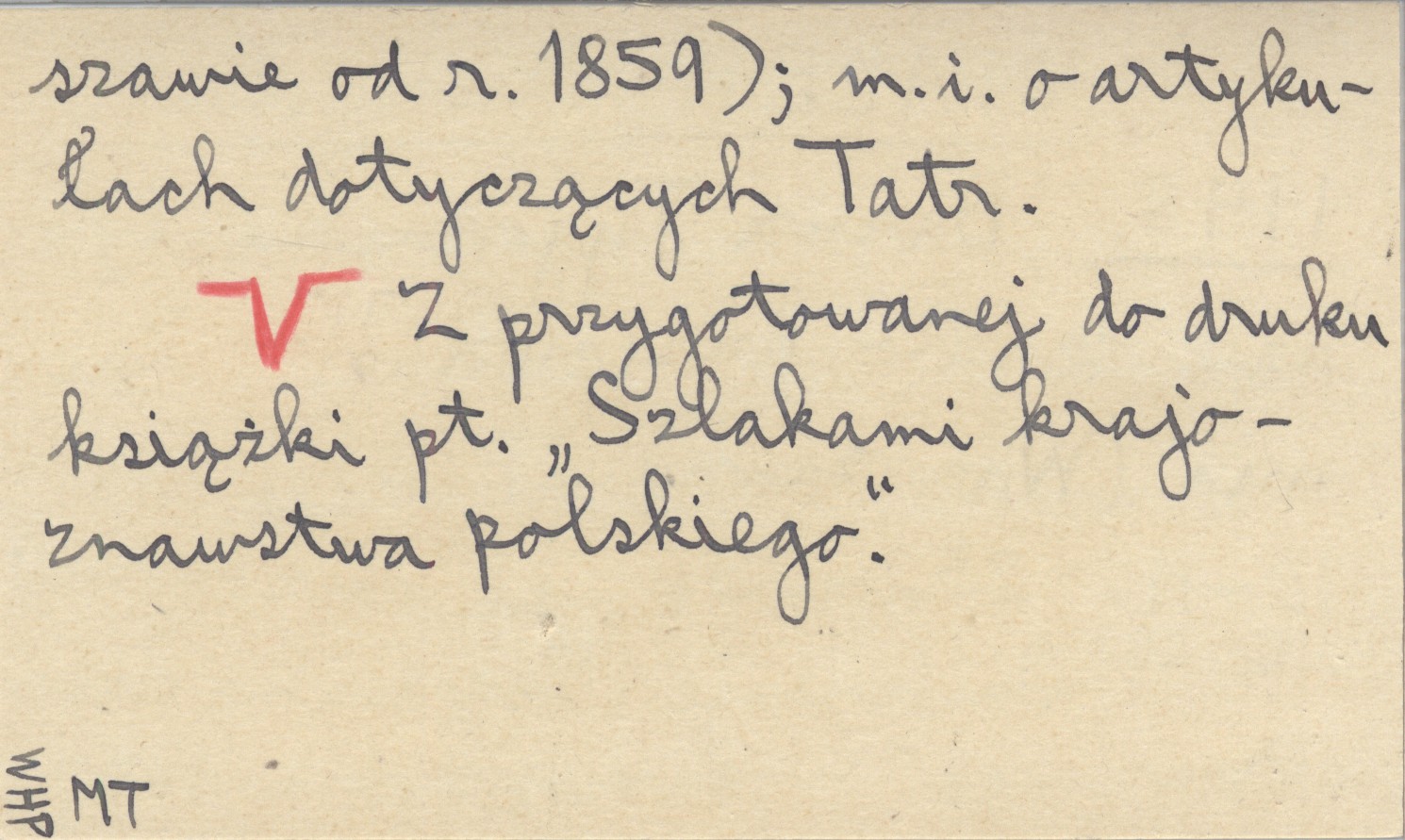 Ziemia (Warszawa) , 27 (39), nr 10-11: 252-256, il.; nr 12: 280 (err.). Omówienie "Tygodnika Illustrowanego" (wychodzącego w Warszawie od r. 1859). M. in. o artykułach dotyczących Tatr.