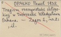 OPAŁKO Paweł 1938 Tragizm rzeczywistości chłopskiej w twórczości Władysława Orkana.