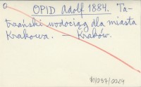 OPID Adolf 1884 Tatrzański wodociąg dla miasta Krakowa.